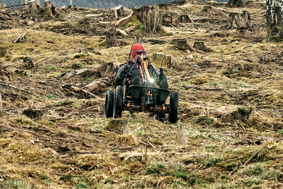 OFFROAD HANDBIKE: Für Rollstuhlfahrer sind Bordsteinkanten, Treppenstufen, Wurzelpfade, Sandstrände und Bergpfade oft unüberwindbar. Die Tretzeug GmbH hat die Lösung für diese Probleme. Das Offroad-Handbike Manul 4×4 meistert diese Herausforderungen mit sportlicher Leichtigkeit. Es schafft über 40 % Steigung und kann da rauffahren, wo andere nur runterfahren können. Zusätzlich kann man am Bike seinen Rollstuhl mitnehmen und als Handbiker auch mal wieder in ein Gasthaus oder Café einkehren.