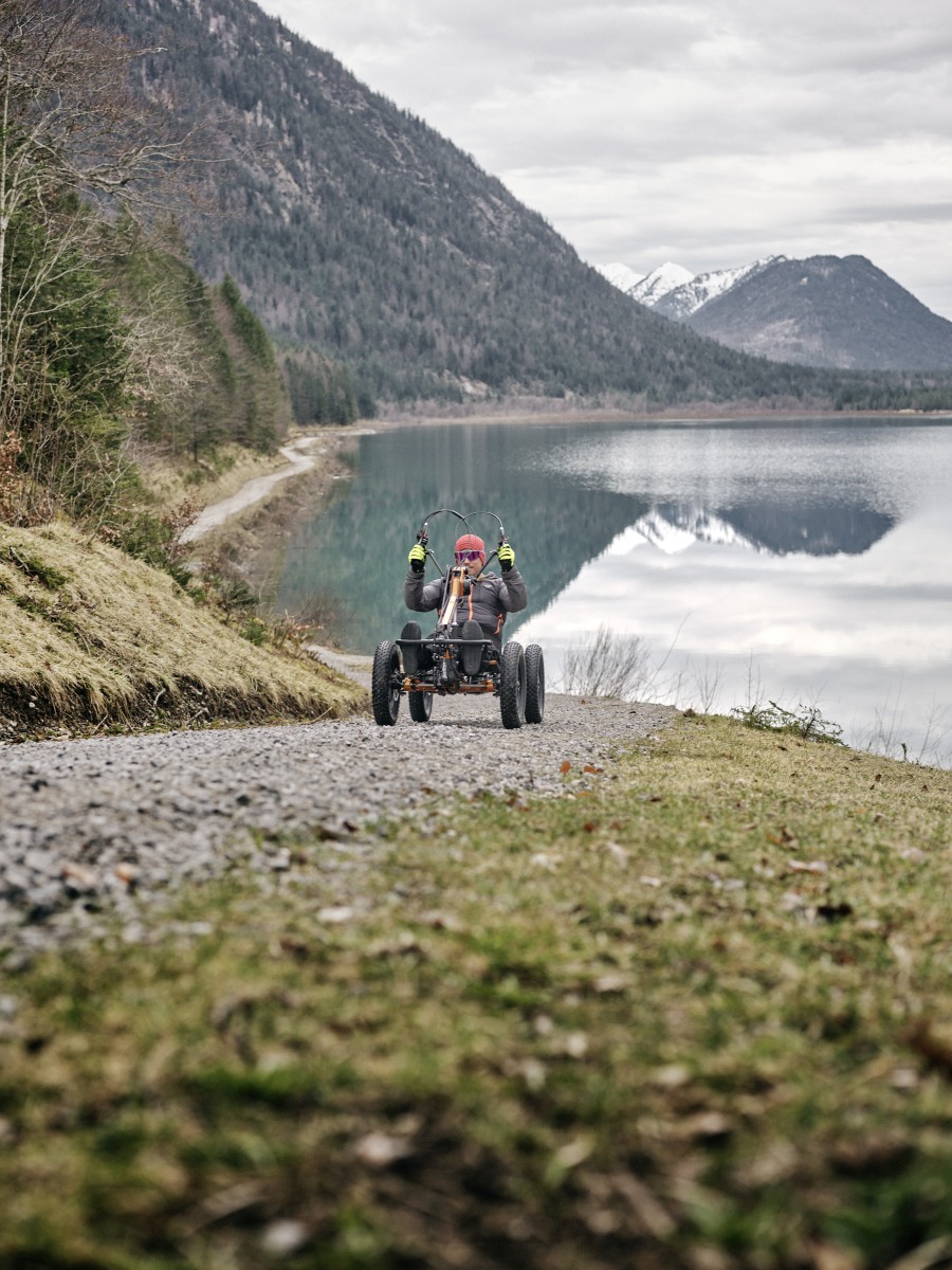 Bordsteinkanten, Wurzelpfade oder steile Anstiege – Hindernisse, die sonst den Weg versperren, verwandeln sich plötzlich in pures Fahrvergnügen. Mit dem Manul 4×4 Offroad-Handbike wird Freiheit neu erfahrbar: steile Hänge hinauf, über Schotter und Sand, mitten durch die Natur. Wo andere stehen bleiben, geht es einfach weiter. Und das Beste: Der eigene Rollstuhl fährt mit – für spontane Stopps im Café oder eine gemütliche Einkehr.